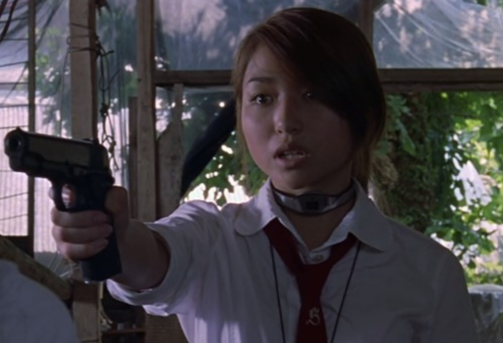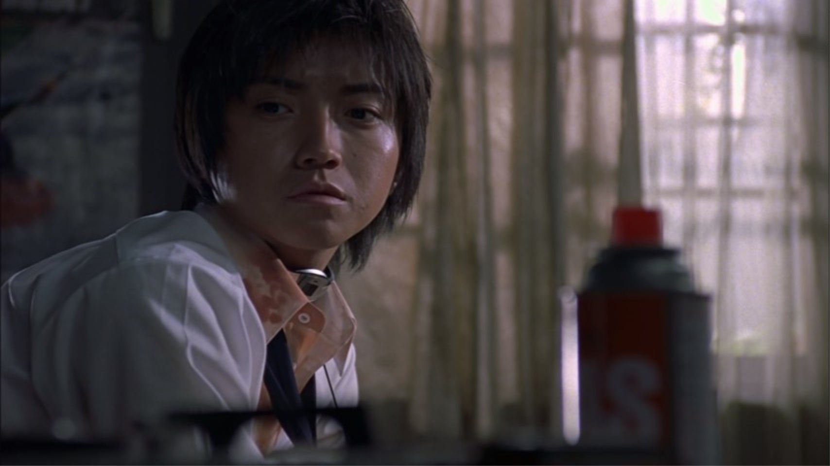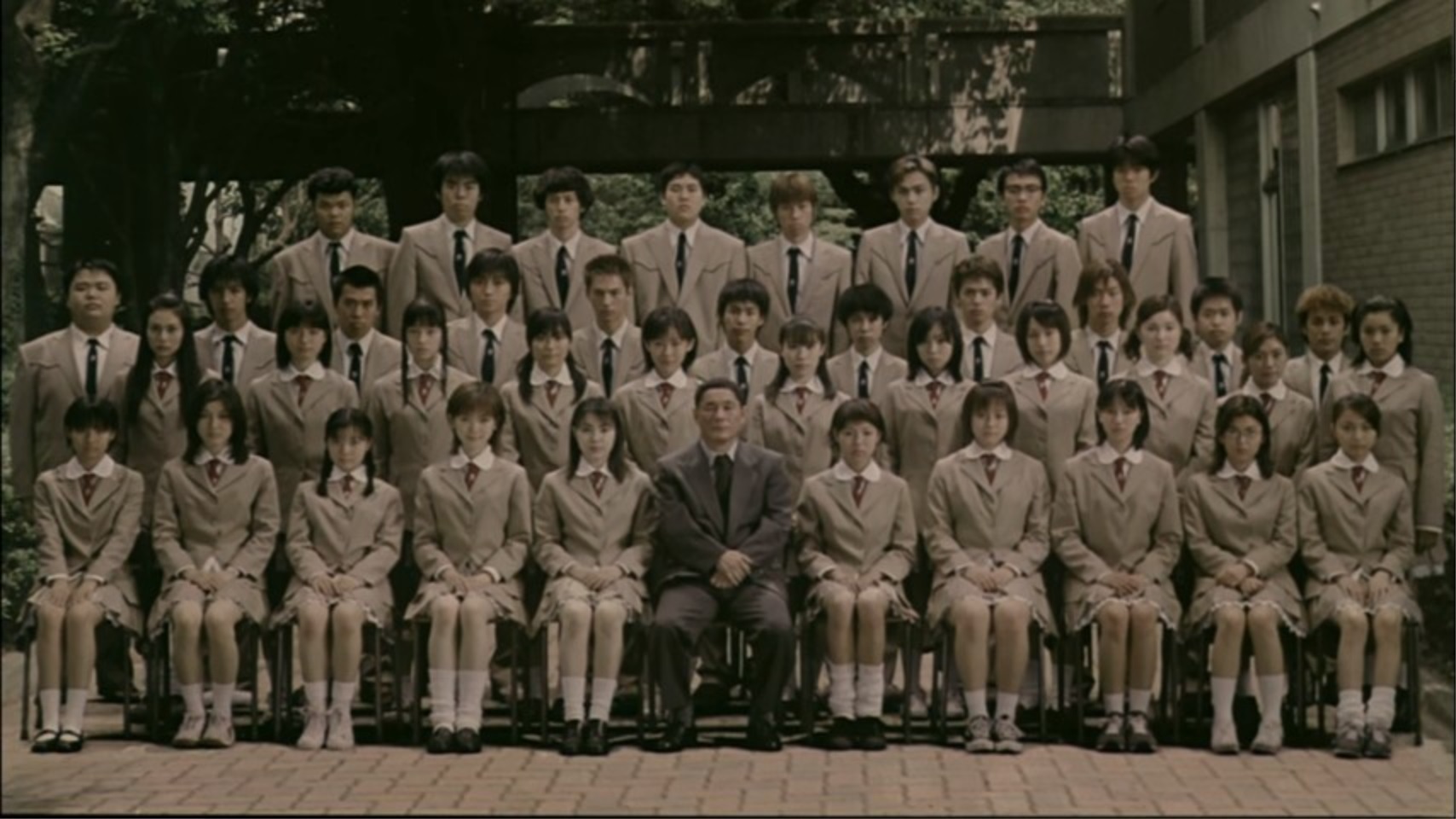 Transfer student and was grabbed by Mitsuru's gang as they assumed he was working with Kitano-Sensei. His weapon initially was pretty useless.Due to his run in with Mitsuru's gang, he got an uzi. He obviously had a cheat code for infinite ammo. He was the main villain in the entire movie. The only one who came close to his level of violence was Mitsuko. Shogo claimed that Kazuo was probably the one who willingly signed up for this. He never talked in the movie. There is a version of Kazuo (not in the movie) that made his decision to participate on a coin toss.