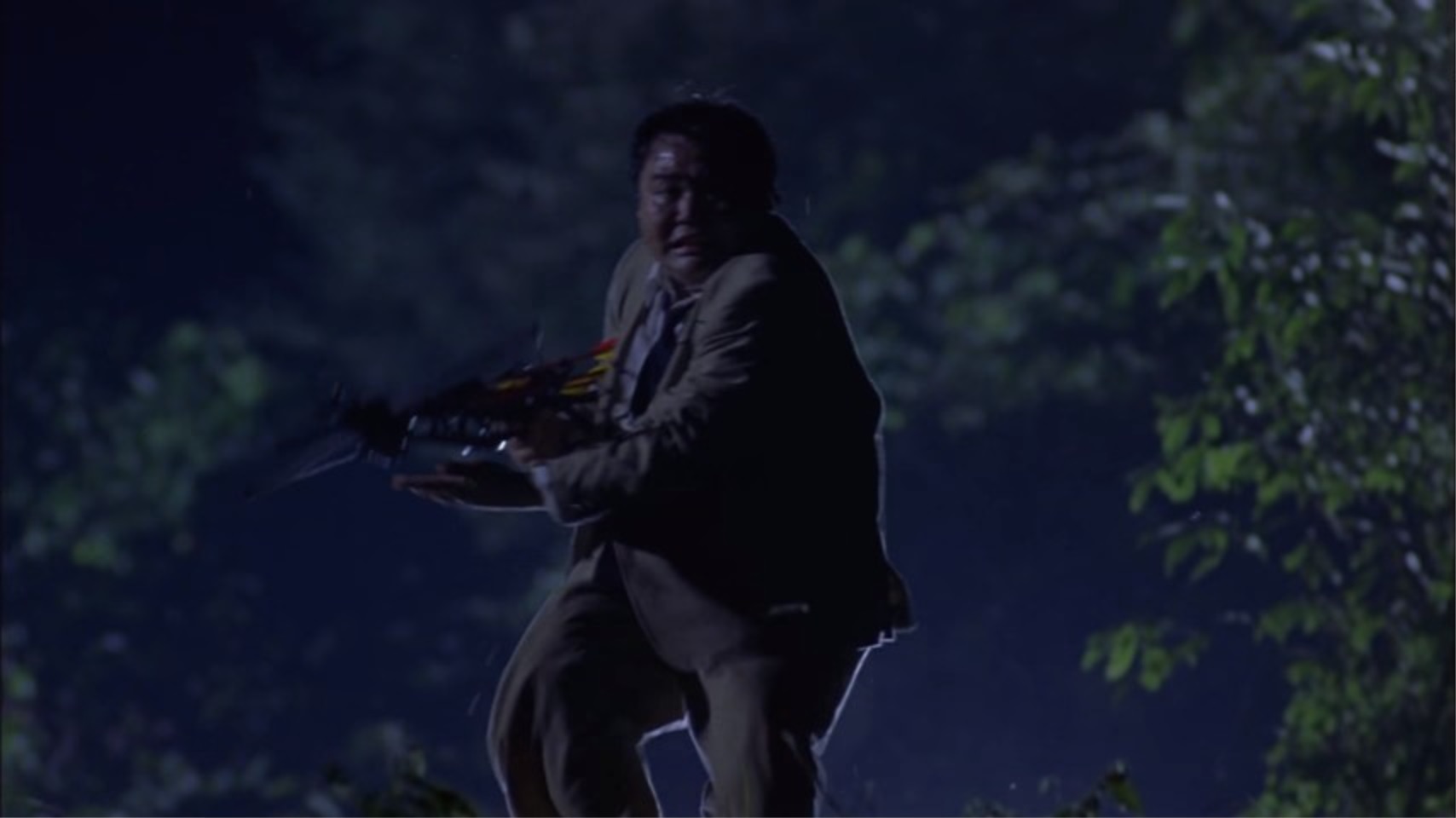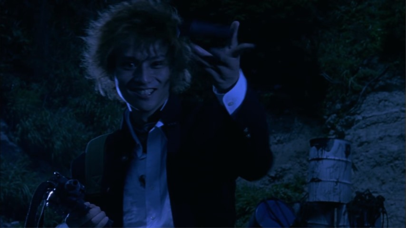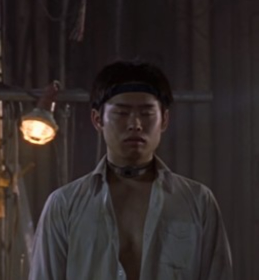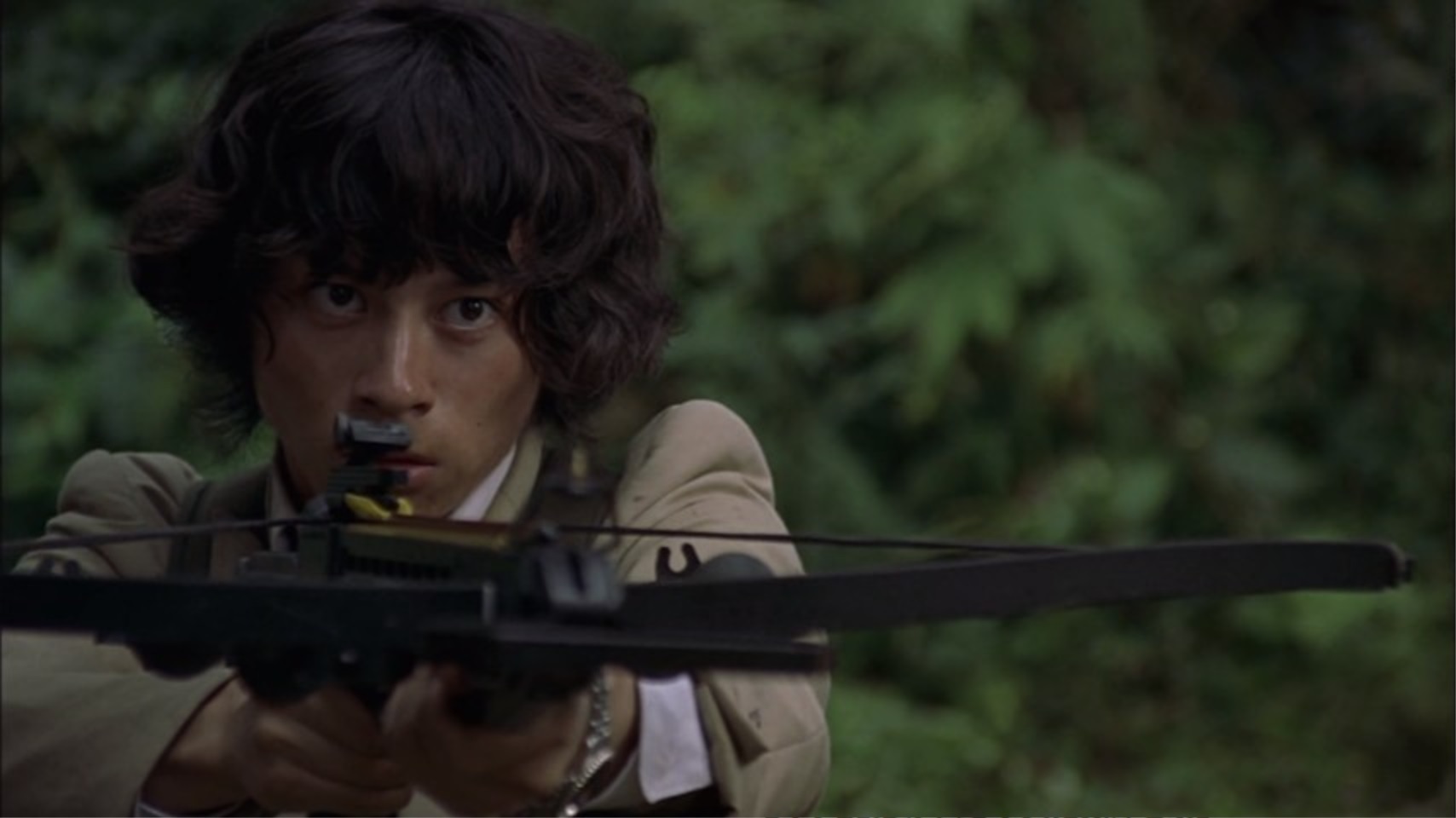Transfer student and was grabbed by Mitsuru's gang as they assumed he was working with Kitano-Sensei. His weapon initially was pretty useless.Due to his run in with Mitsuru's gang, he got an uzi. He obviously had a cheat code for infinite ammo. He was the main villain in the entire movie. The only one who came close to his level of violence was Mitsuko. Shogo claimed that Kazuo was probably the one who willingly signed up for this. He never talked in the movie. There is a version of Kazuo (not in the movie) that made his decision to participate on a coin toss.
